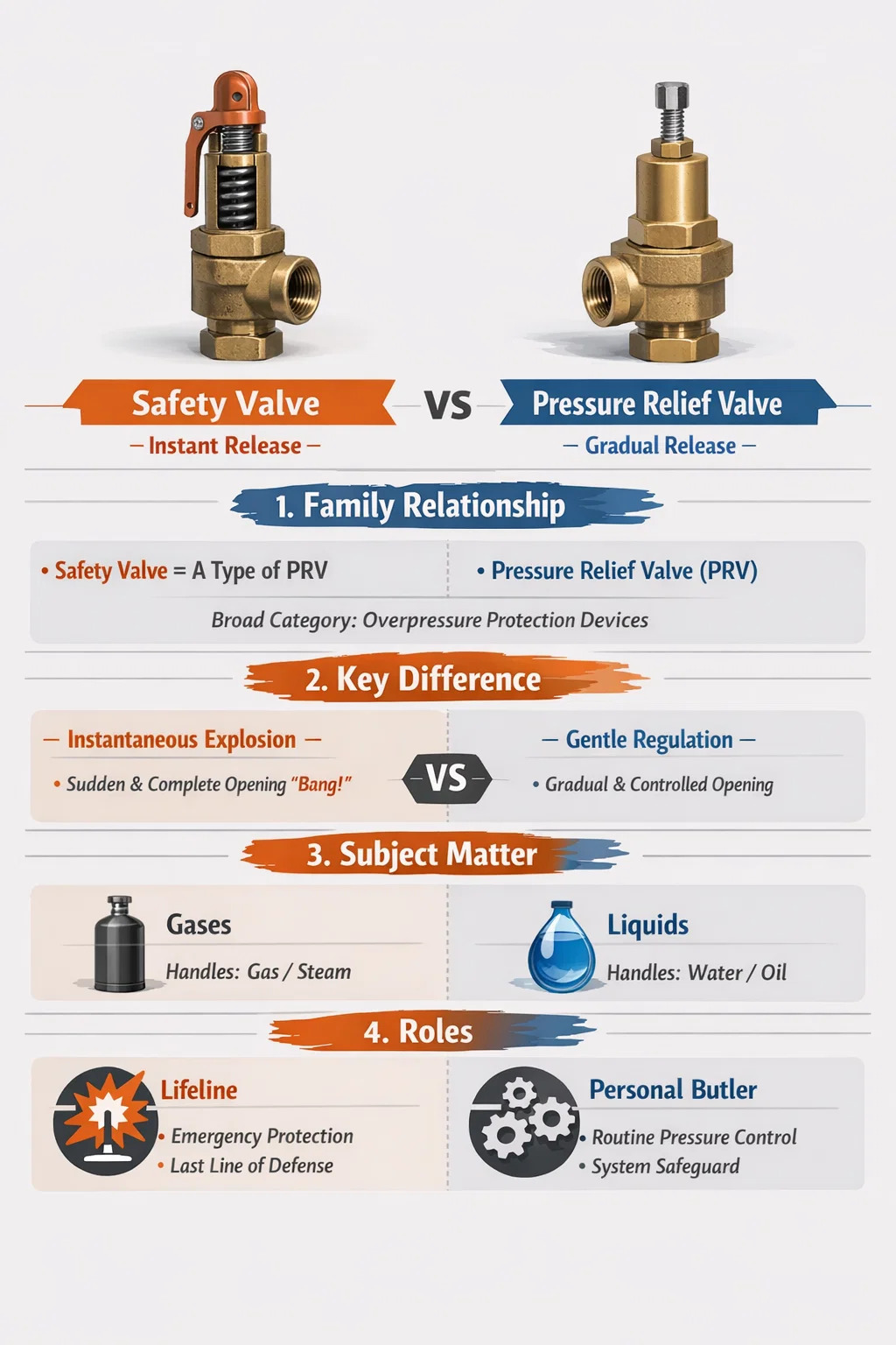Pressure relief valves (PRVs) and safety valves are closely related. In the broad industrial classification, they both belong to "overpressure protection devices," but in practical applications and characteristics, they are not entirely the same.