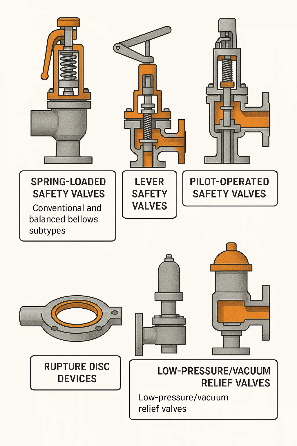 This is the most common and basic type, using the force of a spring to counteract the internal pressure of the system.